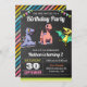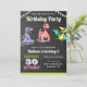Incêndios para seus convidados com este convite de aniversário colorido com adoráveis dinossauros com tipografia vibrante contra um fundo de quadro. Basta adicionar os detalhes do seu evento neste modelo fácil de usar para torná-lo um convite de tipo único. Sacudir a placa para revelar um padrão colorido de listras na parte traseira da placa.