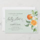pouco convite para chás de fraldas e laranjas de citrinos com aquarelas. O texto e as cores podem ser personalizados.