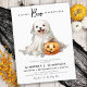 Se você está procurando uma maneira fofa e divertida de convidar seus amigos e família para seu próximo chá de fraldas, não olhe mais! Nossos convites "A Little Boo is Quase due" são perfeitos para um chá de fraldas temático do Dia das Bruxas. Apresentando uma design de aquarela de um fantasma fofo, abóbora, e a adorável frase "Um Pequeno Boo Está Quase Devido", perfeita para celebrar a chegada de um menino ou menina. COPYRIGHT © 2023 Judy Burrows, Black Dog Art - Todos Os Direitos Reservados. Cartão-postal para o Chá de fraldas de Boo Cute Halloween