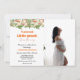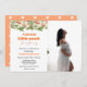 Cartão de convite para chás de fraldas neutro para o tema pêssego russo com uma imagem de fruta de jardim em um galho de árvore. Perfeito para o chá de uma garota de verão.