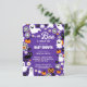 Pequeno boo chá de fraldas do Halloween margarida retrora estilo modelo convite, fofo Jack-o-lanternas, fantasmas de bebês, gato preto, teias de aranha cor branca laranja preto