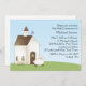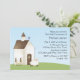 Convite religioso para uma menina ou um rapaz com igreja branca na colina com flores amarelas e carneiros. Exibido como um convite da Primeira Comunhão Sagrada, mas também adequado para batismos, batizações ou confirmações. Gráficos ©Country Life