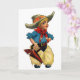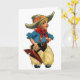 Uma ilustração vintage de um vaqueiro fofo tirado de um velho cartão-postal. A placa é vazio de dentro para a sua mensagem manuscrita.