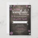 Design apresenta o texto "Um floco de neve está a caminho" junto com flocos de neve rosas e brancos sobre um fundo de madeira rústica, enquadrados em uma armação branca. A design é perfeita para um chá de fraldas de inverno. O texto pode ser personalizável para ajustado das informações que você precisa colocar no cartão de convite.
