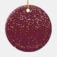 Enfeites de natal apresentado em Plum Wine com uma forma redonda, com um belo Ouro das estrelas impressão e um texto de Feliz Natal. Personalize este item ou comprar como está.
