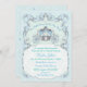 Este doce e fofo convite de chá de fraldas é criado com um sentimento vitoriano vintage. Ele apresenta um fundo azul monocromático e úmido com uma imagem de prata de ornamentado e uma "carruagem" de bebê.