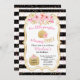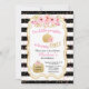 Pequeno Pumpkin é UM! Dourado Rosa- Primeiro Convite de Aniversário com fundo listrado preto e branco, aspergido com confete rosa e dourado. Flores cor-de-água rosa decoraram a bela estrutura dourada.