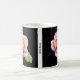 Uma caneca com uma foto de um rosa contra um fundo apagado