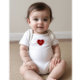 Este adorável traje cardíaco de camiseta é o traje perfeito para o seu pequeno! Feito de material macio e leve, é confortável para o visto do dia todo. O design mínimo com um impressão cardíaco fofo adiciona um toque de doçura. Além disso, você pode personalizar a idade, fazer um presente excelente para novos pais.