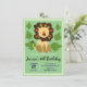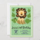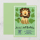 Pequenos convites de aniversário de leões, bem ajustáveis. Perfeito para o evento de festa temida da selva. Doce trabalho de arte de Valarie Wade. O texto ajustável é fácil de usar neste modelo personalizado. Cor de fundo verde escuro.