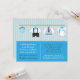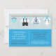 Anuncie a chegada do pequeno cavalheiro com este convite de esquema de cores azuis que vem com roupas de bebê penduradas nas paredes que incluem fralda de bebê, arco inteligente, camiseta e calções, um colete de padrão de diamante e uma gravata azul marinho e um criador de bebê com gravata e aparelho de arco falsos. Padrão de listras azuis para o fundo. Personalize facilmente com os detalhes do seu partido. Esquema de cor azul é adequado para bebês!