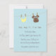 Uma paleta colorida de azul, castanho, branco e amarelo, este convite é excelente para anunciar a chegada dos garotos! Este convite moderno e clássico vem com roupas de bebês que incluem fralda de bebês, meias de bebês, gravata de arco inteligente e aparelho, camisa e shorts, um colete padrão de diamante, gravata azul marinho e um criador de bebês. Personalize facilmente com os detalhes do seu partido. A cor de fundo pode ser alterada.