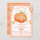 Unisex chá de fraldas pequenas abóboras de bonitinha de aquarela. Ideal para uma gravidez no outono, chá de fraldas e nascimento. Bonito cor d'água pequena pinça de abóbora laranja com bagas de folhas de videira e um fundo de lavagem com aquarela. Personalize com seus próprios detalhes de evento de chá de fraldas. Arte com aquarela original e design por Sarah Trett para www.mylittleeden.com