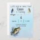 O convite para pescar deste menino é perfeito para aquele pequeno pescador especial na sua vida! Apresentando um baixo, bastão, e lures este convite tem tudo!