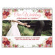 Bem-vindos aos recém-casados com um lindo calendário personalizado do dia do seu casamento. Substitua as fotos por aquelas que você tira no casamento. O calendário é delimitado por flores de coloração d'água rosa e rosa na maioria das páginas. A página de cobrir tem as palavras "Nosso Casamento" e os nomes dos casais e a data do casamento. Todo o texto pode ser alterado para complementar o casamento.