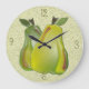 este relógio tridimensional da parede PEAR com seus verdes ousados, amarelos e fundo salpicado faria uma PEÇA FUN ACCENT para a decoração da sua cozinha. trabalho de arte por imagens do kaps