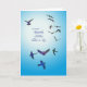 Expresse a sua simpatia pela triste perda de um sogro. Uma carta simples para expressar o mais triste dos sentimentos. Um bando de pássaros multicoloridos voa num céu azul.