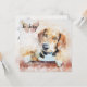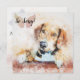 Ilustração de cachorro com asa de anjo transparente e borboleta ao fundo.