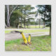 Esta cena humorística foi vista numa área rural entre Lal Lal e Clarendon, em Victoria, Austrália. No primeiro plano, um par de calças de chuva amarelas brilhantes e botas pretas estão se erguendo hetero do chão, como se alguém tivesse sido plantado de cabeça para baixo. As "pernas" são cercadas por um pequeno anel de pedras, aumentando a ilusão de que alguém caiu de cabeça na terra ou cresce dela como uma planta. O fundo apresenta árvores altas, vedações de arame, e um cenário silencioso no país, dando a toda a cena um contraste pacífico, mas absurdo.