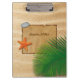 O papel de pergaminho velho com folha de palmeira, a pedra e a estrela do mar na praia lixam o fundo.