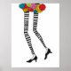 Pernas dançarinas esfoladas em miras brancas e pretas com uma saia floral viva.
