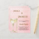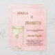 Um convite moderno, na moda e glamouroso para um Chá de panela de Pérolas e Prosecco. Um fundo gradiente cor-de-rosa com manchas ouros, um copo com bolhas e pérolas. O nome é escrito com um moderno estilo escrito à mão. Personalize e adicione os detalhes da sua festa. 1 folha = 1 convite impresso de borda a borda.