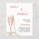 Um convite moderno, na moda e glamouroso para um Chá de panela de Pérolas e Prosecco. Um fundo branco com um copo com bolhas cor-de-rosa e pérolas. O nome é escrito com um moderno estilo escrito à mão. Personalize e adicione os detalhes da sua festa. 1 folha = 1 convite impresso de borda a borda.