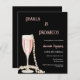 Um convite moderno, na moda e glamouroso para uma festa de aniversário de Pérolas e Prosecco (qualquer idade) Um fundo preto com um copo com bolhas e pérolas cor-de-rosa. O nome é escrito com um moderno estilo escrito à mão. Personalize e adicione os detalhes da sua festa. 1 folha = 1 convite impresso de borda a borda.