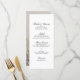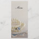 Personalize o bonito menu White Pearls, Diamond Ring e Blue Lace Wedding com os detalhes da refeição que você servirá no seu janto de festa de noivado, almoço de chá de panela ou recepção de casamento, adicionando a salada ou o primeiro curso, a entrada ou o segundo curso e a sobremesa ou o terceiro curso. Personalize-o com os nomes da noiva e do noivo, localização do local e data do evento. Este elegante menu nupcial personalizado apresenta uma fotografia de um colar de pérolas branco e um anel de noivado de diamante com um lenço azul e branco aparado de renda.