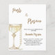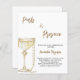 Um convite moderno, na moda e glamouroso para um Chá de panela de Pérolas e Prosecco. Um fundo branco com um copo com bolhas e pérolas. O nome é escrito com um moderno estilo escrito à mão. Personalize e adicione os detalhes da sua festa. 1 folha = 1 convite impresso de borda a borda.