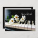 Design do convite do desempenho musical com piano, jóia da pérola, e um buquê da margarida. Personalize a parte traseira com seus detalhes, data, hora, nome e informações adicionais pessoais para original de um convite feito sob encomenda personalizado tipo do considerando das expressões de papel.