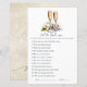 Desafie os hóspedes no seu chá de panela com este cartão de jogo de memória do tema Pérolas e Prosecco. Com óculos prosecco elegantes, sotaques pérolas delicados e um design moderno, este jogo é divertido e na moda. Perfeito para criar risos e memórias duradouras enquanto celebra a noiva-a-ser. Totalmente personalizável para se adequar ao tema exclusivo do seu chá de panela.