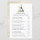 Adicione diversão às suas pérolas e chá de panela prosecco com este elegante cartão de jogo "Ela Preferencialmente?". Apresentando uma charmosa garrafa de champanhe e design de vidro com sotaques florais, este jogo desafia os convidados a adivinhar as preferências da noiva em uma variedade de cenários divertidos. Uma atividade perfeita para criar o riso e momentos memoráveis durante a sua celebração. Totalmente personalizável para ajustado do tema do chá de panela.