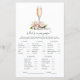 Adicione entusiasmo às suas pérolas e chá de panela prosecco com este elegante cartão de jogo "O que tem na sua bolsa?". Apresentando um vidro chic champagne e design floral, este jogo interativo permite aos hóspedes marcar pontos com base nos itens que têm na bolsa. Uma atividade divertida e envolvente perfeita para reunir todos e celebrar a noiva a ser. Totalmente personalizável para corresponder ao tema do seu chá de panela.