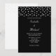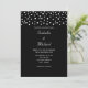 Pérolas cinza prateadas elegantes em convite de casamento preto e branco. O verso tem dois corações. Os cartões também podem ser personalizados para aniversários, formaturas, aniversários, chás de bebê e outras celebrações.