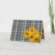 Cartão único, clássico, de moda, bonito e decorativo de Ação de Graças. Recortar com amor do texto e da sala para personalizar ou personalizar com uma foto e nomes (ou nome da família) de sua escolha. Com Mãe de flores amarelas quentes e bonitas design de flores de amarela-quente, abóboras de flores azuis-chocas, castanho-mostarda-chocre e cinza de fazenda rústica inspiraram o padrão de tartan xadrez. E um poema de saudação de estação personalizável no dentro do cartão.