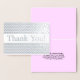 Este design de cartão de obrigado saudar personalizado e básico de folha prateada apresenta a mensagem "Obrigado!" na frente, juntamente com uma mensagem personalizada no dentro. Poderia ser usado para oferecer obrigados a alguém que fez algo especial.