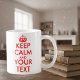 Personalizado mantenha a calma e as suas canecas de café do texto. Criar seu próprio copo de bebendo engraçado da paródia de Keepcalm. Modelo vermelho da tipografia do vintage com coroa. Personalize-a com seu texto. Mantenha calmo e beba o café. Mantenha calmo e beba o chá. Faça seu próprio design tomado partido dobro. A ideia bonito do presente do humor para o dia dos pais, o dia das mães, o aniversário, o empregado de escritório, o chefe, o professor, a mamã e o pai etc. mudam a quantidade para obter o preço o mais barato por a caneca. Também disponível como a extra grande e a versão grandes do viagem.