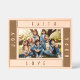 Um quadro de imagens de madeira natural, gravado a laser, distinto e sentido, com quatro campos de tipografia personalizáveis, que atualmente exibe "Fé", "Esperança", "Amor" e "Alegria", perfeito para palavras inspiradoras, nomes ou outros toques pessoais. Para solicitações ou perguntas especiais, entre em contato com o artista em wafadahdalcreates@gmail.com. © Wafa Y. Dahdal - Todos os direitos reservados. WD Art