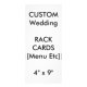 Cartões de rack personalizados e de menu, impressos no estoque de cartão branco brilhante (100 lb.) com acabamento de brilho, alta qualidade, cor de cheio, impressão com branqueamento de cheio. Opções de 4" x 9" (retrato) ou 9" x 4" (paisagem). Mínimo 25 pedidos de cartão. Até 50% de desconto para pedidos em massa. Central de WEDDING Personalizada - CRIE, FAÇA, DESIGN O MENU E AS PLACAS DE PROGRAMA PERSONALIZÁVEIS DE um VAZIO design PERSONALIZÁVEL.