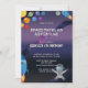 Este convite para os olhos apresenta um fundo de galáxia vibrante com cores giratórias e padrões cósmicos. Mostra ilustrações lúdicas de um astronauta flutuando pelo espaço, um foguete elegante preparado para lançamento e planetas brancos espalhados pelo design. No topo, a tipografia ousada e divertida diz: "Você é Convidado para uma Aventura Espacial-Tacular!" Abaixo, os detalhes essenciais do partido estão claramente definidos, garantindo que os convidados tenham todas as informações necessárias para a emocionante celebração. As opções de texto personalizado estão disponíveis, permitindo que você inclua as informações de data, hora, local e RSVP personalizadas para o seu evento.