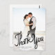 Personalize esta foto de casamento de Na moda Obrigado Cartão-postal, projetado com divertido texto negro em negrito de manuscrito moderno Obrigado por uma fotografia vertical. Substitua a imagem modelo por sua própria imagem, para obter melhores resultados, use a imagem de alta resolução. Esta design tem um texto: "Obrigado por partilhar no nosso dia especial." Você pode alterar as palavras com suas próprias palavras ou excluir o texto para mantê-lo vazio. *créditos de fotos Modelo © por Sean McGrath