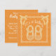 Personalize o convite do chá de fraldas laranja com quadro laranja claro e dois pequenos arcos bonitos no topo de cada canto. E dois calçados de bebê e texto É um bebê! no centro. Em segundo plano é um padrão repetível de Chá de fraldas de texto.