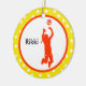 Mostre sua paixão de vôlei a qualquer momento com nosso ornamento. Apresenta um fundo de poca-ponto amarelo com um gráfico de setter vermelho de vôlei, personalize com o nome na frente e a mensagem personalizada no verso. Excelente de Natal ou qualquer época do ano!