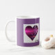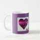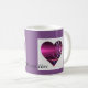 Design simples que espera sua mensagem. Caneca do coração roxo.