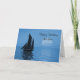 Um iate veleja num oceano calmo com o sol no fundo. Um cartão de aniversário para um irmão