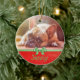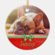 Adicione a imagem do seu cão ou gato a esta bonitinha, vermelha e verde, guardando o Enfeites de natal, mas carregando a sua imagem na área personalizada.