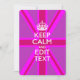 Seu personalizado "Fique Calmo" dizendo em uma vibrante decoração de união rosa-rosa. Um estilo "Manter Calmo" personalizado dizendo em um presente gentil. Humorístico ou caprichoso experimente suas palavras criativas em duas linhas editáveis de texto. Lembre-se de usar letras CAPITAL para obter melhores resultados. Use o link "Perguntar a este Designer" para entrar em contato conosco com suas solicitações especiais de design ou para obter assistência com suas necessidades de personalização.