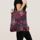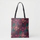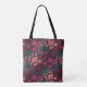 Make a statement with this personalized floral tote bag, featuring a rich, moody palette of hand-drawn blooms in pink, purple, and green against a deep burgundy background. Centered at the top is a customizable label where customers can add their initial and family name, making this tote a thoughtful gift or a stylish everyday essential.