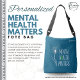 The design features a calming blue background decorated with a delicate dandelion graphic, symbolizing hope and growth, paired with the phrase “Mental Health Matters” that proudly includes the green awareness ribbon. To make it truly yours, we personalize it with your name, turning this everyday tote into a meaningful statement piece. It’s not just stylish—it’s a small way to spread awareness and remind yourself and others that mental health is important.